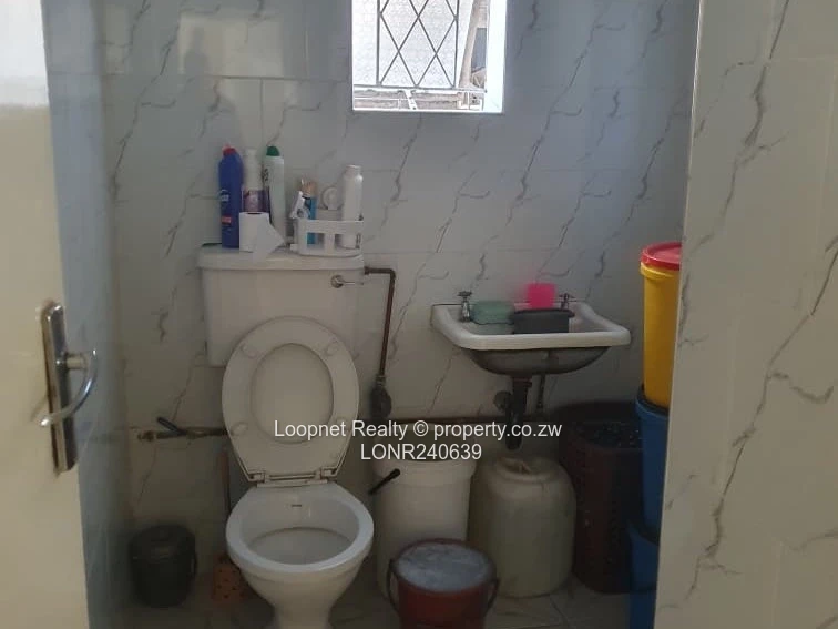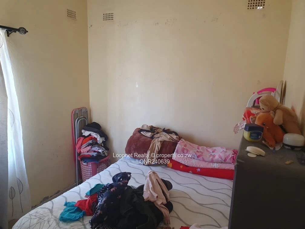 The living area, featuring an entertainment setup, is perfect for unwinding after a long day. The flat is located in a vibrant neighborhood, with easy access to local amenities, schools, and transport links, making it a practical choice for anyone looking to settle into Chitungwiza.