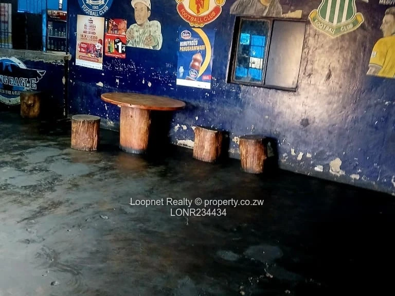 Prime commercial opportunity in Shamva — 2,000 m² stand with a solid 500 m² single-storey retail building, ideal for investors or business owners ready to expand in Mashonaland Central. As seen in the photos, the property presents a long street-facing frontage with a covered veranda and multiple entrance bays, secure steel window grilles and a corrugated roof. Interior spaces include an existing bar/retail area fitted with a wooden service counter, display fridge, shelving and a pool table with informal timber stump seating — perfect for a tavern, entertainment venue, convenience store or mixed retail use. Walls are painted with community-favourite club murals, giving character and ready social appeal.
